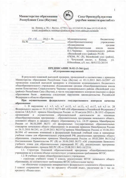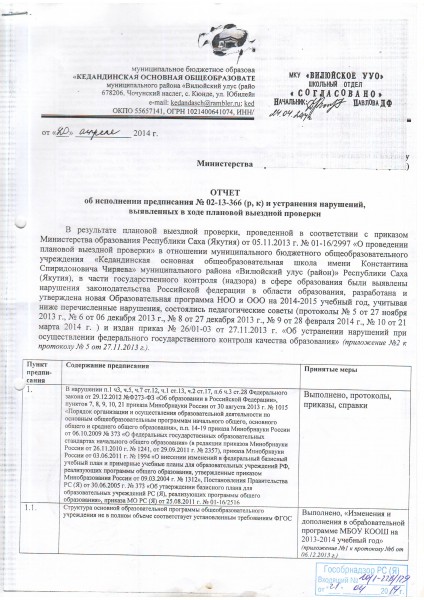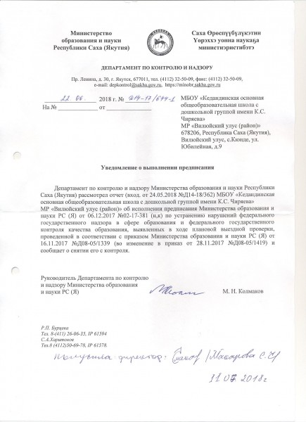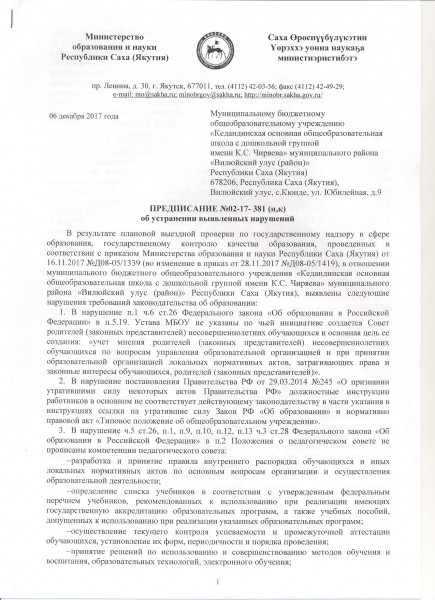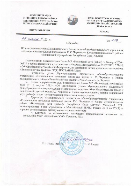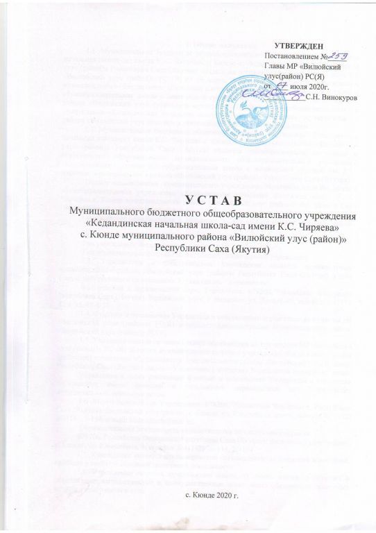 УСТАВ "Кедандинская начальная школа-сад им.К.С.Чиряева"